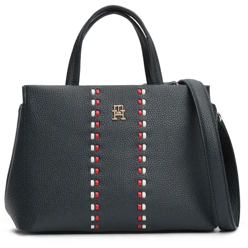 Discover the epitome of sophisticated style with the TOMMY HILFIGER Timeless Mini Bag. This compact powerhouse blends classic American cool with modern functionality. Crafted from durable navy blue faux leather, its structured mini satchel silhouette keeps your essentials organized and secure. Enjoy hands-free convenience with the adjustable strap, perfect for shoulder or crossbody wear. Finished with the iconic metallic TH monogram, this versatile bag effortlessly elevates any look, taking you from a busy day to an elegant evening out. A true wardrobe staple for the modern woman