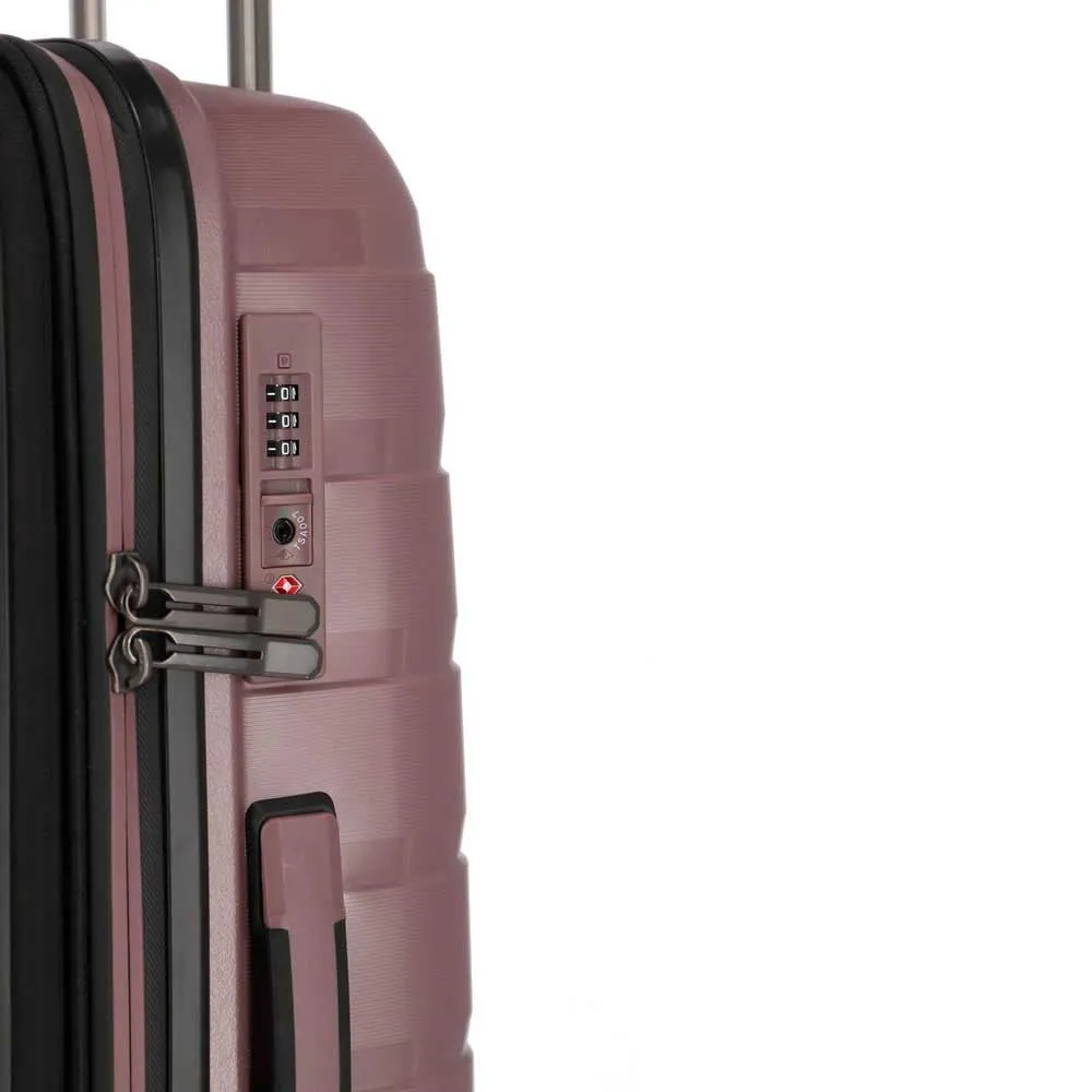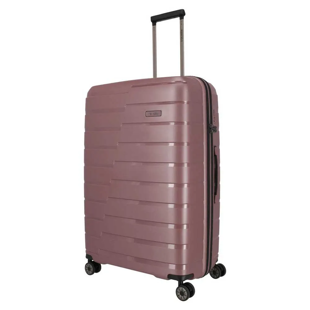 Experience first-class travel with the TRAVELITE Air Base trolley. Crafted from virtually unbreakable yet incredibly light polypropylene, this 105L suitcase is built for the modern globetrotter. Its eye-catching design features a unique interplay of rough and shiny surfaces. Inside, stay impeccably organized with a high-quality lining, dual packing walls with zipped pockets, and elastic straps. Glide effortlessly through any airport on four smooth double wheels, all secured by an integrated TSA lock. The perfect blend of durability, style, and function