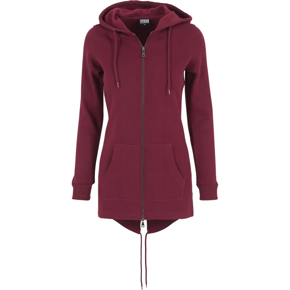 This sporty and comfortable parka is an absolute must and is based on the design of a classic hoodie. The generous hood with metal-reinforced drawstrings and the cozy kangaroo pocket promise heavenly wearing comfort. The durable material of the parka offers a long service life. In addition, the hip sweater is equipped with a continuous zipper on the front. At the back, an elongated, round split hem takes on more style points. It´s adjustable with the built-in drawstring. The elasticated zip cuffs are a nice detail of this sporty women´s jacket.Oberstoff 1: 63% Baumwolle 37% Polyester, half brushed fleece, 300 GSM
