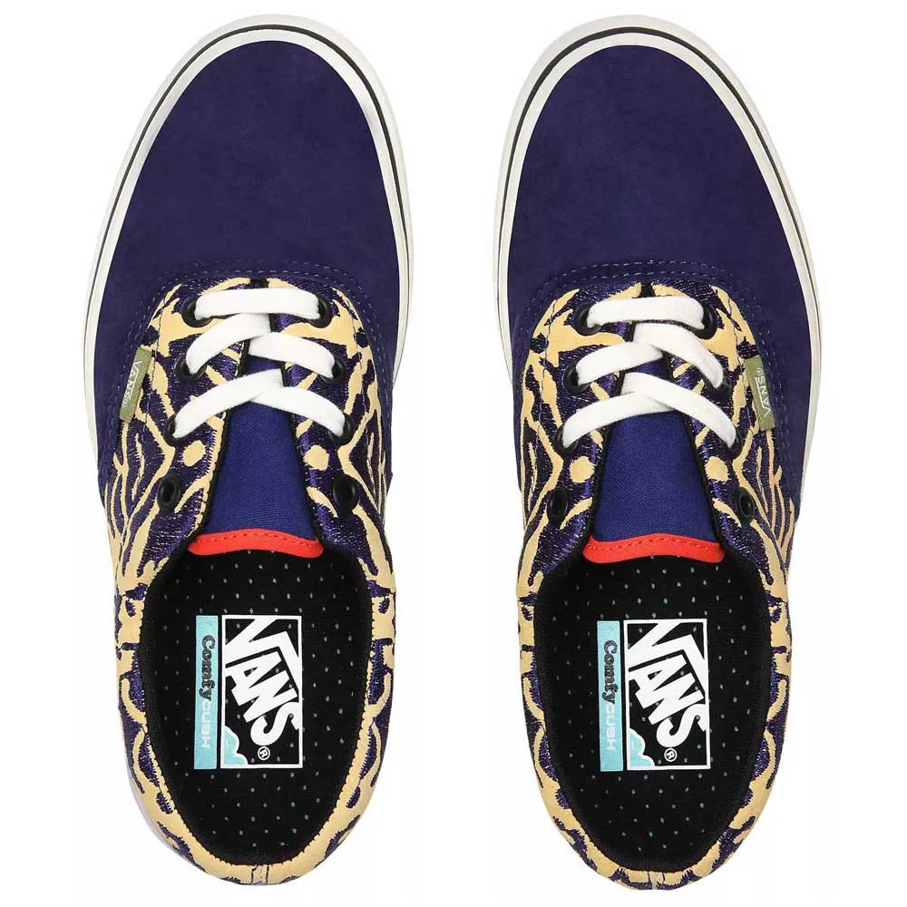 Vans has reinvigorated the classic Era by introducing ComfyCush: a new softer, cushiony outsole that gives the ComfyCush Era a first-class fit that feels like walking on a cloud. Newly constructed canvas uppers house simplified one-piece interiors with added arch support and new moisture-wicking lining throughout, resulting in a lightweight experience that assures you’ll Keep It Comfy at all times.