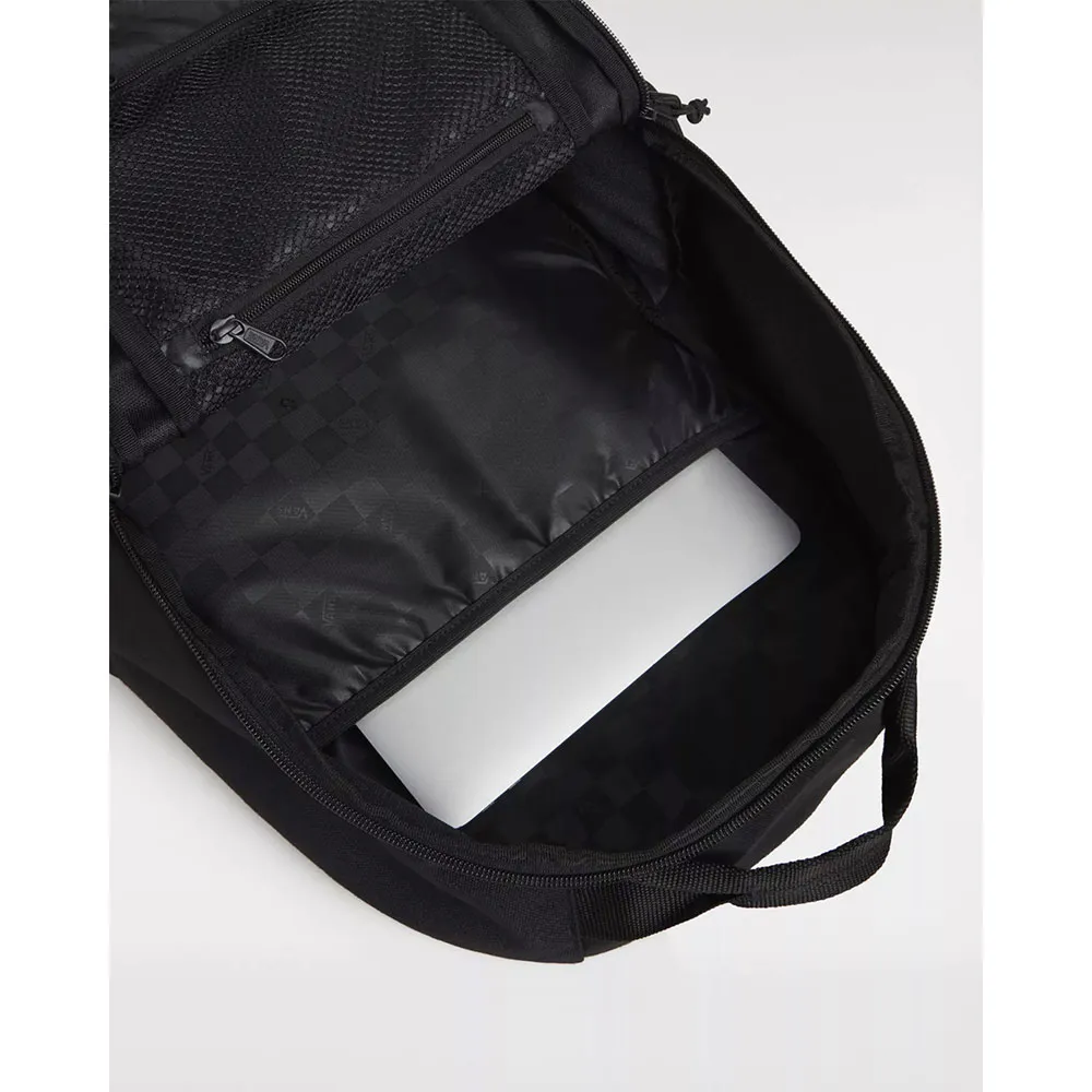 The Vans Resolute Backpack is made with CORDURA® fabrics that are recognised for their long-lasting durability and resistance to abrasion, tearing, and scuffs. This backpack has a main compartment with a zip, a stretch mesh water bottle pocket and an exterior zip pocket. It also has a padded laptop sleeve that fits most 15´´/38cm laptops. Padded shoulder straps, a waffle mesh back panel and an adjustable sternum strap bring extra comfort and there is a shoe compartment for convenience. The bag measures 48 h × 30 w × 14 d cm and has a 27-litre capacity.