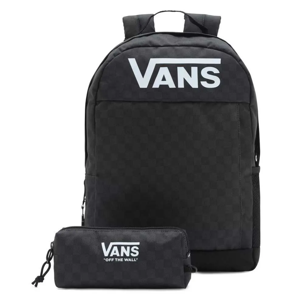 Everyday functionality and iconic style come together in the Boys Vans Skool Backpack. The front pocket features an organizer to help keep your essentials neatly arranged, and the matching pencil pouch offers even more ways to stay organized. Along with a stretch mesh water bottle pocket and comfortable padded shoulder straps, the Vans Skool Backpack has the features you need to get through the day with ease.