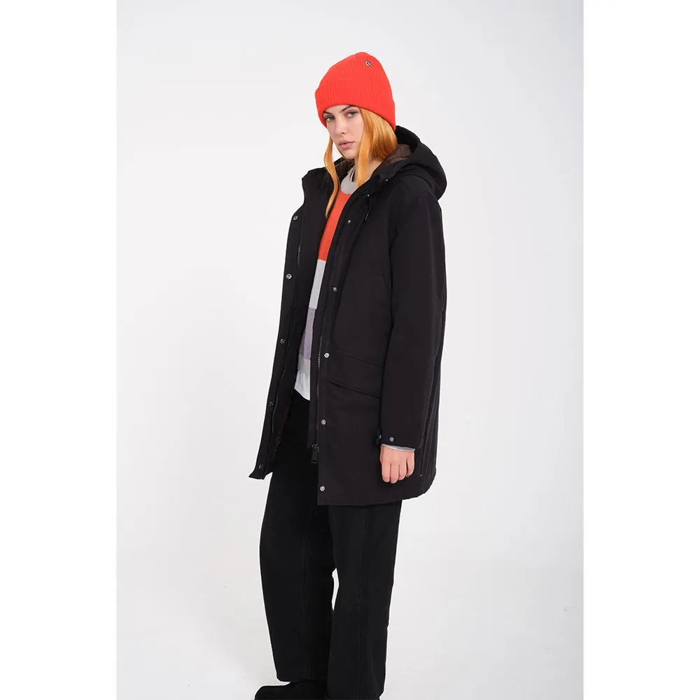 The 10,000mm water-resistant canvas is lined with soft sherpa and taffeta, while the adjustable hood and waist provide a customized fit.