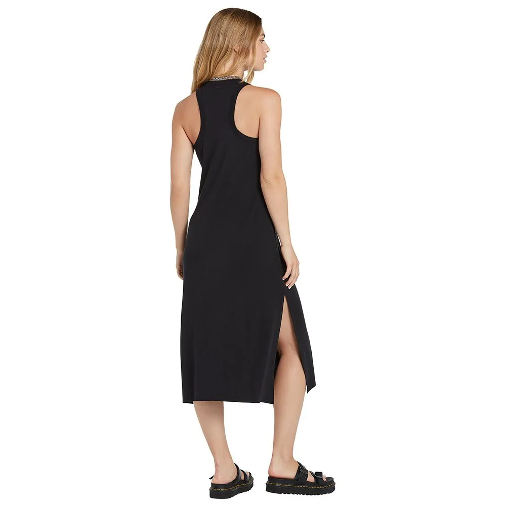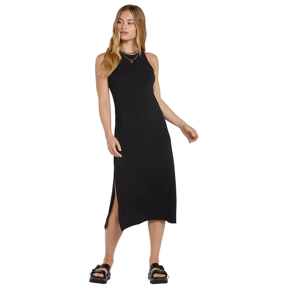 Discover the VOLCOM Stonelight Dress, a perfect fusion of sophisticated style and ultimate comfort. Crafted from a buttery-soft modal jersey, this body-skimming midi dress gracefully follows your form without clinging. Its chic high neckline and athletic racer back create a modern, flattering silhouette, while a daring thigh-high side slit adds a touch of allure and ensures freedom of movement. Incredibly versatile, this minimalist staple transitions effortlessly from a casual day with sneakers to an elegant evening out with heels
