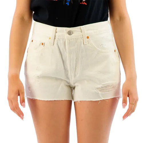Estos shorts Levi´s presentan un corte fantástico y favorecedor que moldea el cuerpo a la perfección. Elogiados por su denim auténtico y de alta calidad, el ajuste es generalmente fiel a la talla, aunque algunas versiones rígidas y sin elasticidad pueden sentirse más ajustadas. El popular diseño de tiro alto no es demasiado corto, lo que convierte a estos cómodos y elegantes shorts en un favorito versátil y femenino
