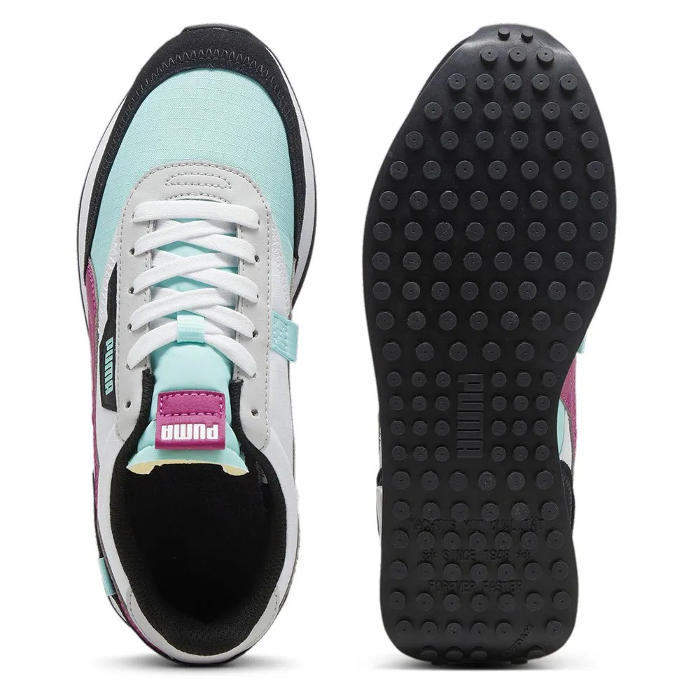 Nacido en 1980, el Fast Rider se lanzó cuando el running pasó de la pista a la calle. Ahora, hemos renovado el Fast Rider en el Future Rider, que cuenta con una suela exterior de suspensión delgada y nuestra cómoda entresuela Rider Foam. Esta versión Play On luce una base de nylon con superposiciones de gamuza y sintéticas.