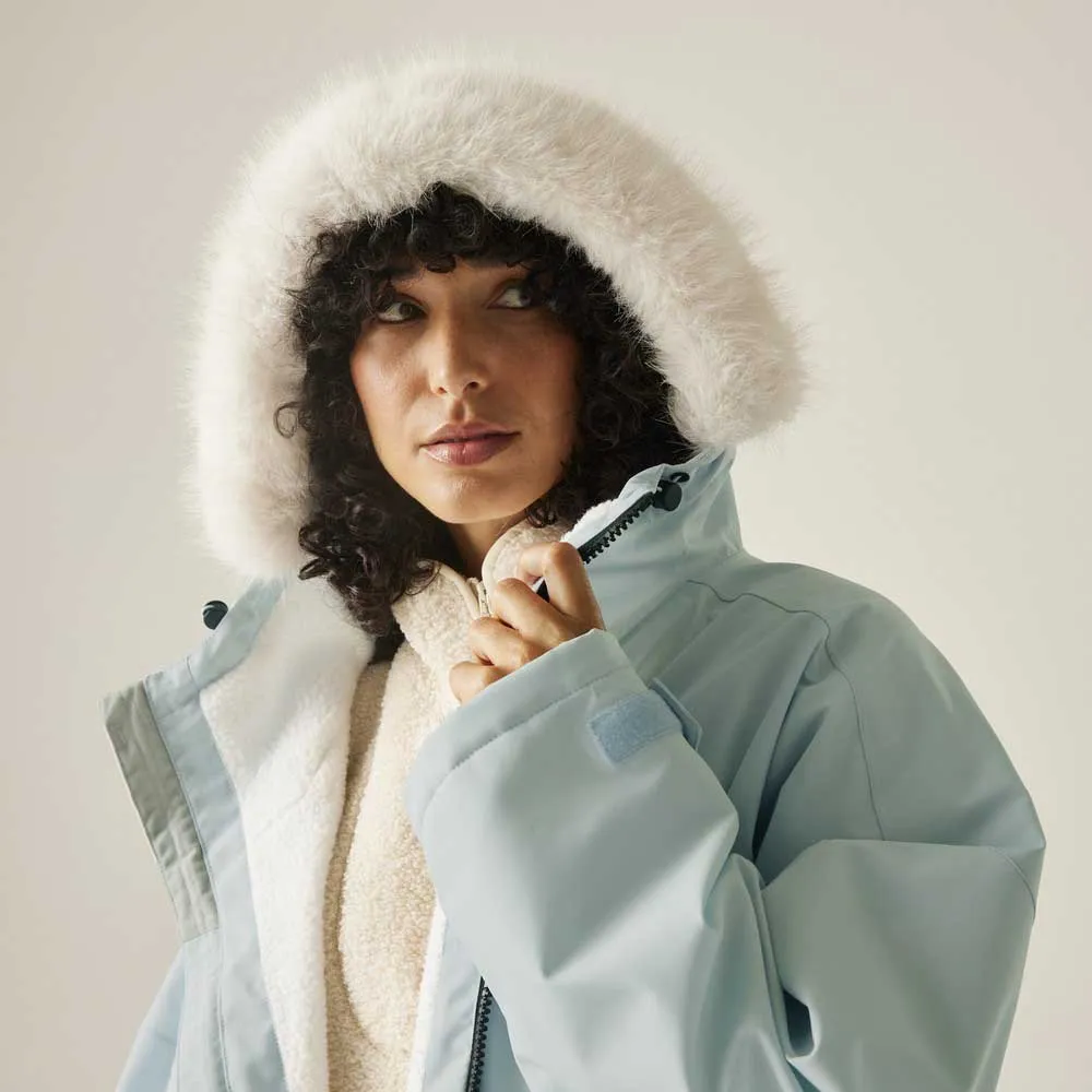 - Capucha fija con ribete de piel sintética