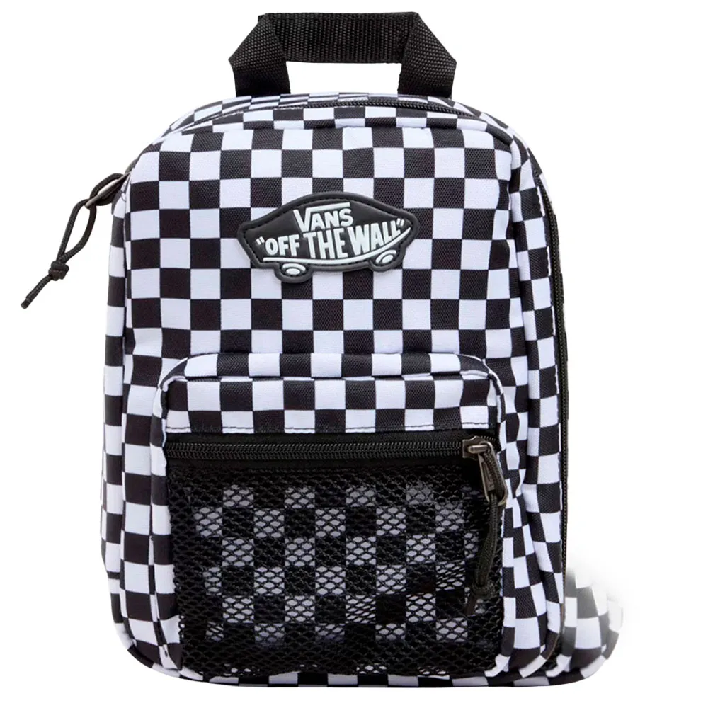 Mejora tu hora del almuerzo con la lonchera Old Skool. Con el icónico estampado Checkerboard de Vans®, esta lonchera incluye un compartimento principal con cremallera, un bolsillo frontal de malla con cremallera, un asa de velcro para transportarla fácilmente y una etiqueta para el nombre en la parte posterior.