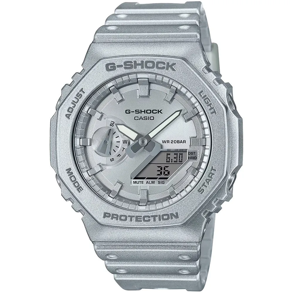 Koe CASIO G-Shockin legendaarinen kestävyys. Modernille miehelle suunniteltu sen iskunkestävä hartsirakenne kestää minkä tahansa iskun, kaupunkiviidakoista karuihin maisemiin. Sukella seikkailuun luottavaisin mielin sen vaikuttavan vedenkestävyyden ansiosta. Tämä analogi-digitaalikello on täynnä ominaisuuksia pitääkseen sinut ajan tasalla, sisältäen sekuntikellon, ajastimen, useita hälytyksiä, maailmanajan ja tehokkaan taustavalon selkeyden takaamiseksi missä tahansa valossa. G-Shock on täydellinen yhdistelmä vankkaa kestävyyttä, olennaista toiminnallisuutta ja tinkimätöntä tyyliä