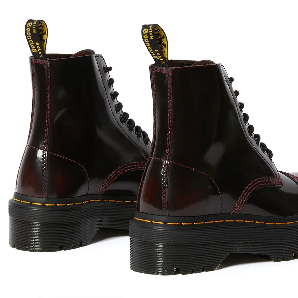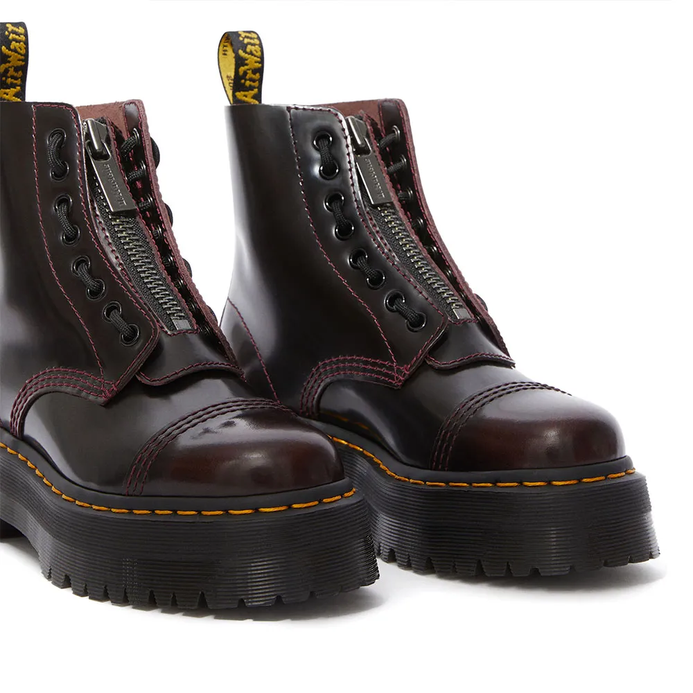 Päästä kapinallinen henkesi valloilleen Dr. Martens Sinclairin avulla. Tämä raju saapas määrittelee uudelleen klassisen Docin irrotettavalla vetoketjulla, tarjoten kaksi ilmettä yhdessä: vetoketju kiinni käytännöllisen särmän luomiseksi tai nauhat kiinni ajattoman 8-reikäisen tyylin saamiseksi. Valmistettu pehmeästä, rumpukuivatusta nahasta heti mukavan käyttökokemuksen takaamiseksi, se on rakennettu vaikuttavalle Quad Retro -platform-pohjalle voimaannuttavan korotuksen saamiseksi. Viimeistelty kestävällä Goodyear-rakenteella, tunnusomaisella keltaisella tikkauksella ja AirWair-kantapäälenkillä, se on äärimmäinen julistus rohkeasta yksilöllisyydestä ja monipuolisesta, kestävästä ja ylellisestä asenteesta