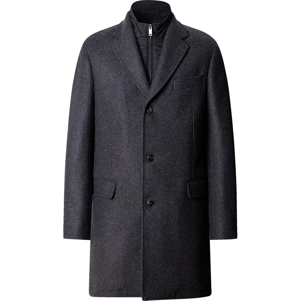 Siinä on yksirivinen lovikaulus, läppätaskut ja irrotettava tikkiliivi.