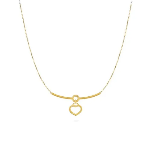 Tämän upean kaulakorun keskipiste on sen ainutlaatuinen kierretty aihe, taidokas linjojen kietoutuminen, joka luo tunteen sulavasta liikkeestä ja visuaalisesta kiinnostavuudesta. Tämä tunnusomainen elementti vangitsee valon joka kulmasta tuottaen hienovaraisen mutta lumoavan hohteen, joka kiinnittää katseen. Herkästä ja valoisasta ketjusta riippuva riipus lepää tyylikkäästi solisluuta vasten, mikä tekee siitä täydellisen yksinään käytettävän minimalistisen ilmeen tai ihanteellisen ankkurin trendikkäälle kerrospukeutumiselle. Muotoilu on sekä riittävän rohkea huomattavaksi että riittävän hienostunut jokapäiväiseen käyttöön, siirtyen vaivattomasti ammattimaisesta ympäristöstä tyylikkääseen illanviettoon.