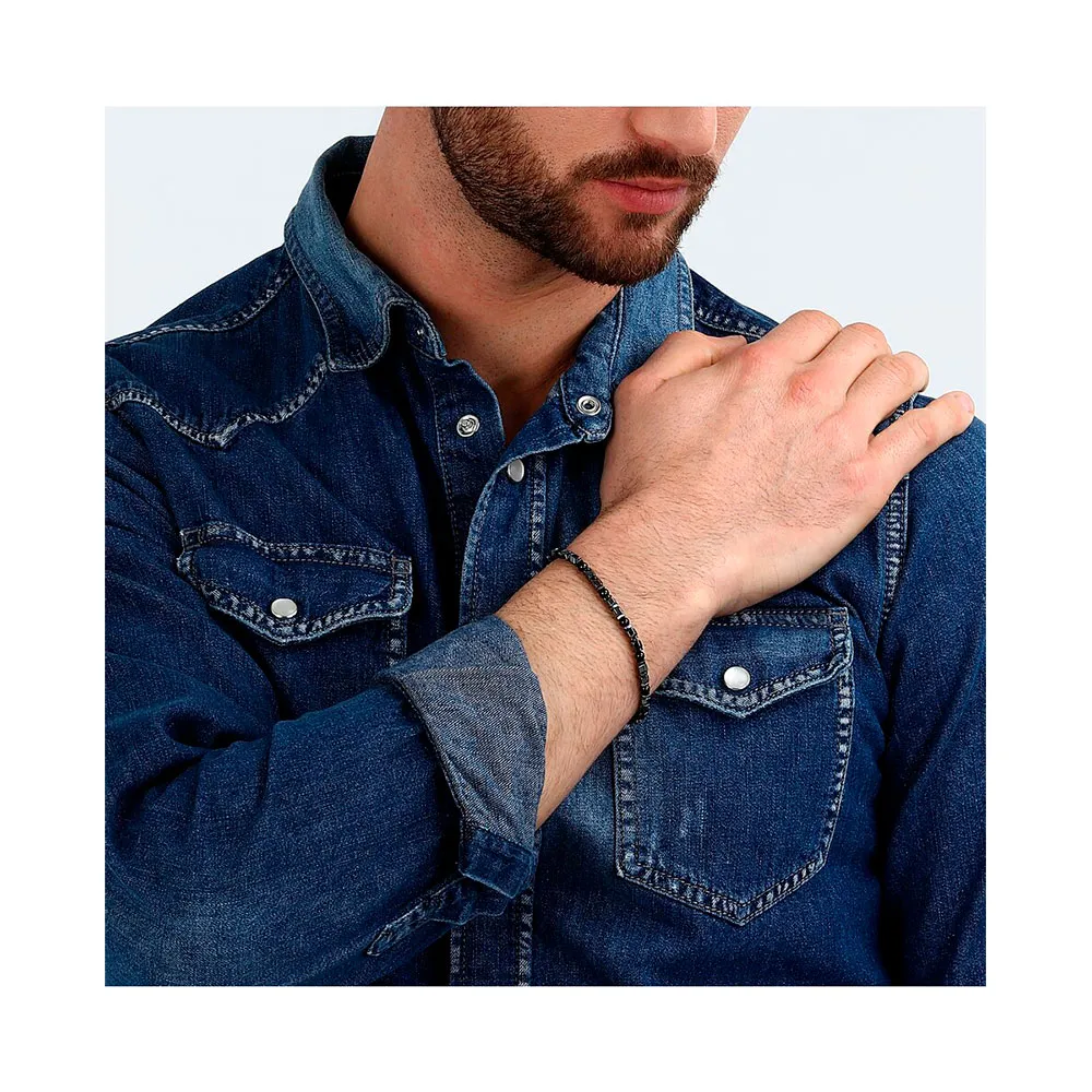 Kestäväksi rakennettu rannekorun korkealaatuinen teräsrakenne varmistaa, että se kestää arjen rasitukset säilyttäen moitteettoman kiiltonsa ja muotonsa ajan myötä. Muotoilu keskittyy sekä muotoon että toimivuuteen, ja siinä on turvallinen ja helppokäyttöinen karabiinilukko. Tämä luotettava kiinnitysmekanismi ei ainoastaan takaa, että rannekorusi pysyy paikallaan, vaan lisää myös hienovaraisen, teknisen yksityiskohdan, joka täydentää sen yleistä voimakasta muotoilua. Aikuisena asusteena se löytää täydellisen tasapainon rohkean ilmaisun ja hillityn tyylikkyyden välillä, tehden siitä ihanteellisen lahjan tai henkilökohtaisen sijoituksen omaan tyyliisi.