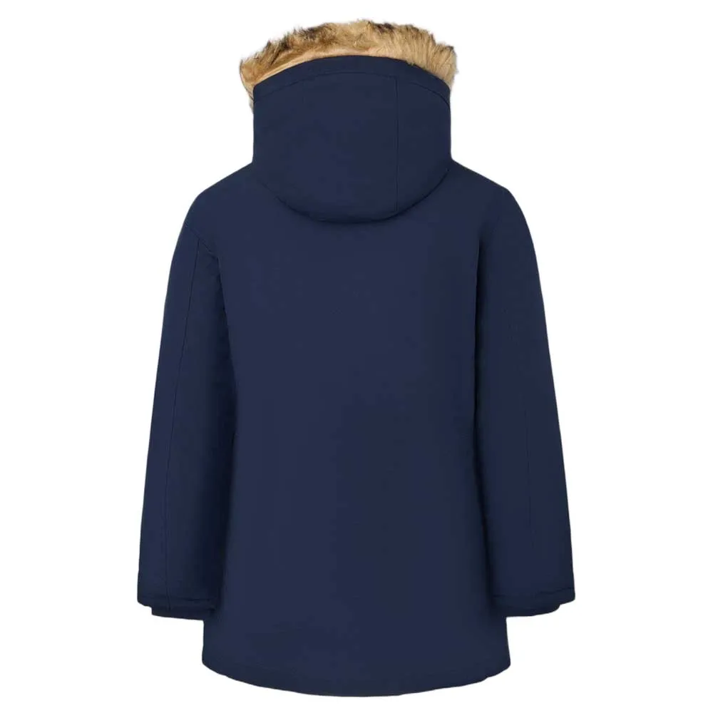 Pitkä tekninen takki suoraleikkauksella hupulla. Siinä on etupuolella paikkataskut läpillä, metallinen vetoketjukiinnitys ja hupullinen kaulus. Lisäksi siinä on mailalogo-merkki vartalossa.