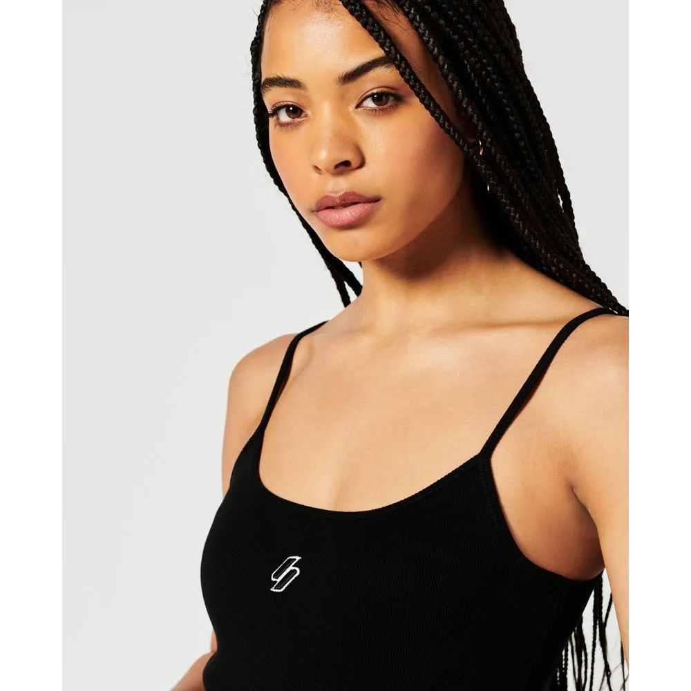 Ohut istuvuus, joka on suunniteltu istumaan lähemmäs vartaloa ja luomaan räätälöidymmän ilmeen, säädettävät spagettiolkaimet, uurrettu materiaali, kirjailtu Superdry-logo, klassinen Superdry-logomerkki.