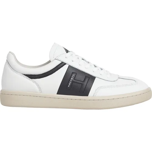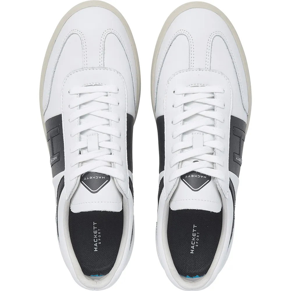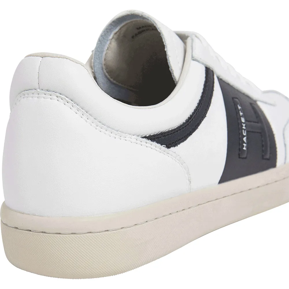 Basket Bond Just sportive avec empiècement décontracté autour du col, confectionnée en cuir recyclé, semelle extérieure bicolore entièrement en caoutchouc avec logo Hackett Sport, semelle intérieure amovible, logos Hackett Sport et monogramme ´´ H ´´ sur la pièce latérale de couleur contrastée.