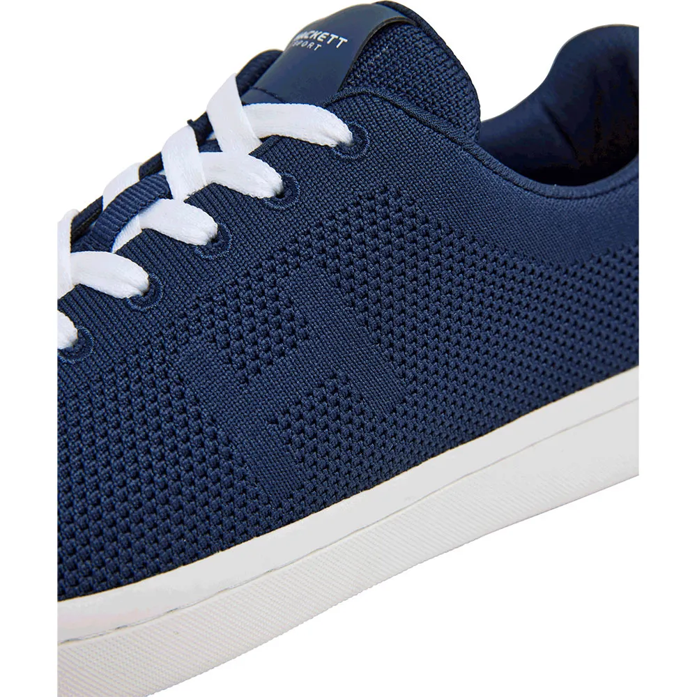 Sneaker en maille tricotée, réalisée entièrement en maille avec différentes textures de tricot créant un motif minimaliste avec le monogramme "h" sur le quartier, logo embossé sur la languette du talon, respirante et très confortable.