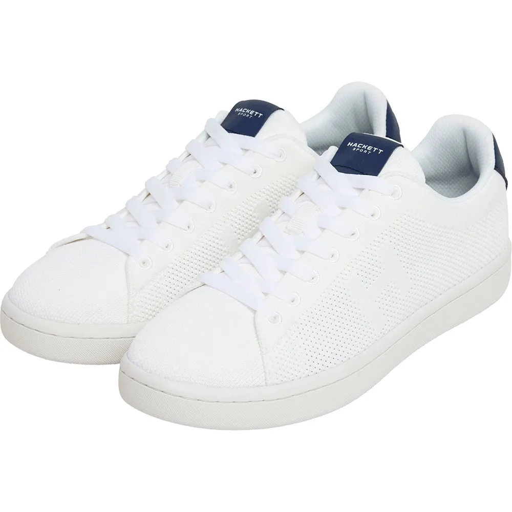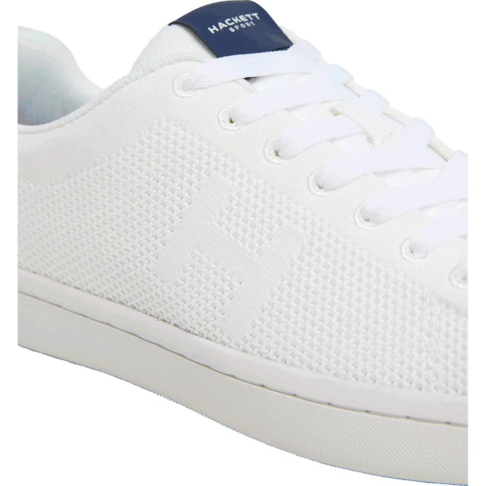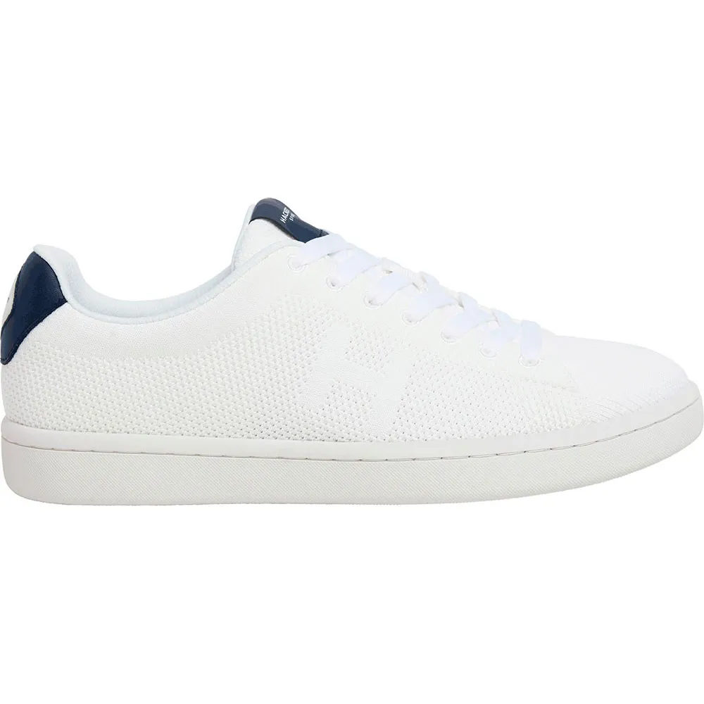 Sneaker en maille tricotée, réalisée entièrement en maille avec différentes textures de tricot créant un motif minimaliste avec le monogramme "h" sur le quartier, logo embossé sur la languette du talon, respirante et très confortable.