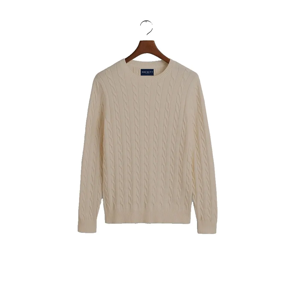 Un élément remarquable est le motif complexe en maille torsadée qui court verticalement le long du vêtement. Ce motif classique n´est pas simplement décoratif ; il ajoute une texture riche et une profondeur visuelle qui élèvent le pull d´un simple basique à une pièce de déclaration sophistiquée. Le tissage détaillé est un clin d´œil à l´héritage classique des vêtements pour hommes, une signature de l´engagement de la marque Hackett envers la qualité et la tradition.