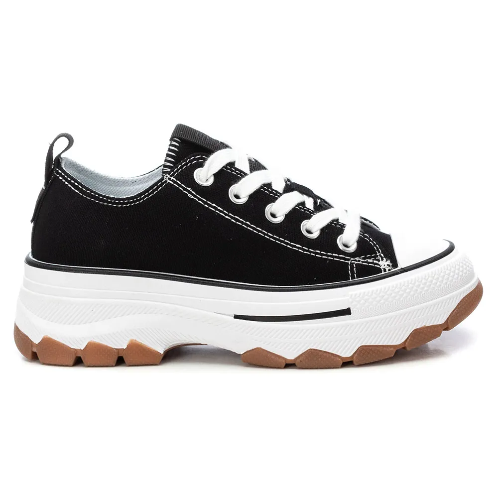Semelle plateforme avec semelle crantée en caoutchouc antidérapant.