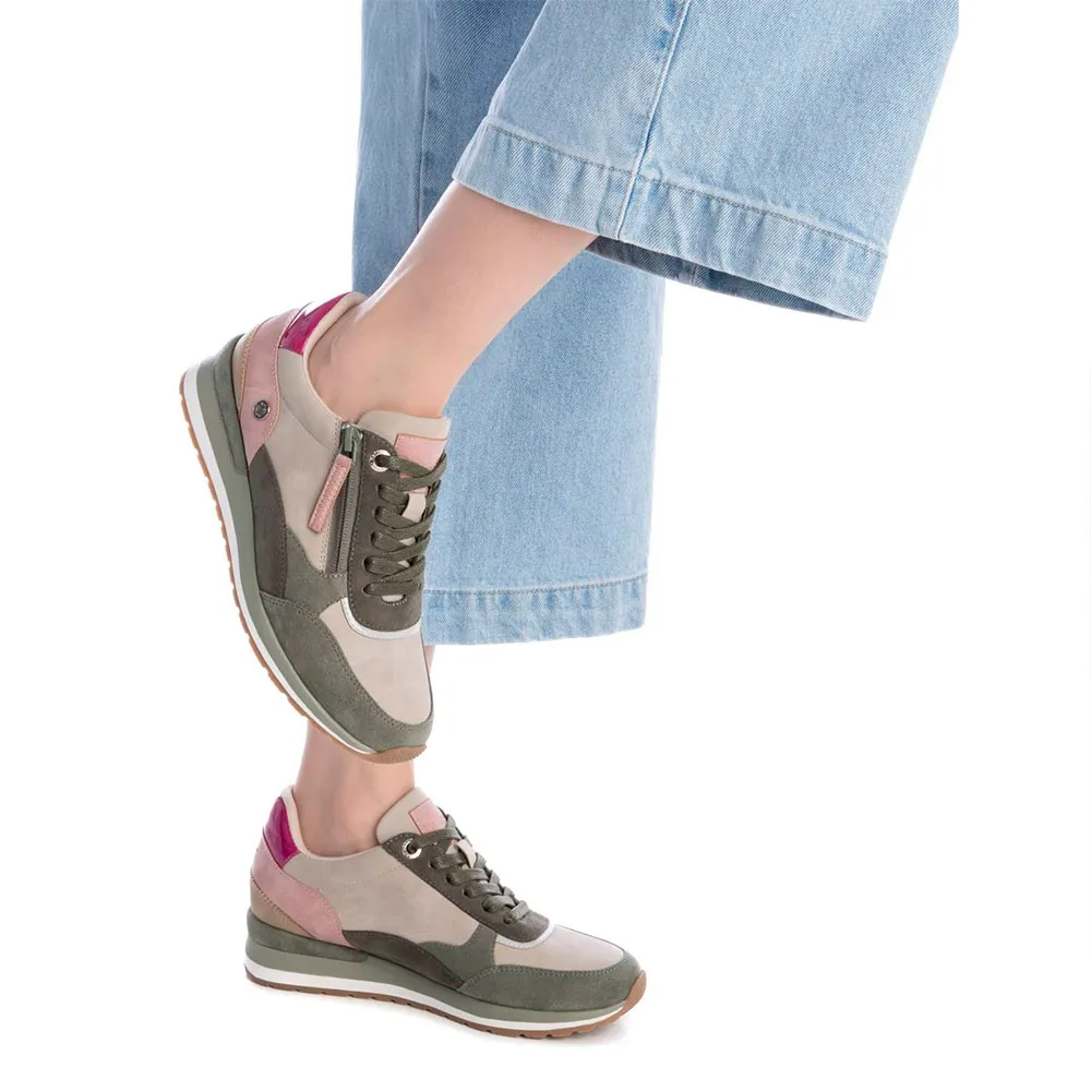 Entraîneur pour femmes, marque Refresh. Fabriqué en matière imitant le cuir combiné avec du daim. Fermeture éclair latérale couverte. Lacets ajustables. Un incontournable pour votre garde-robe cette saison. Ce modèle a été certifié végétalien par l´organisation mondiale PETA (Organisation des droits des animaux).