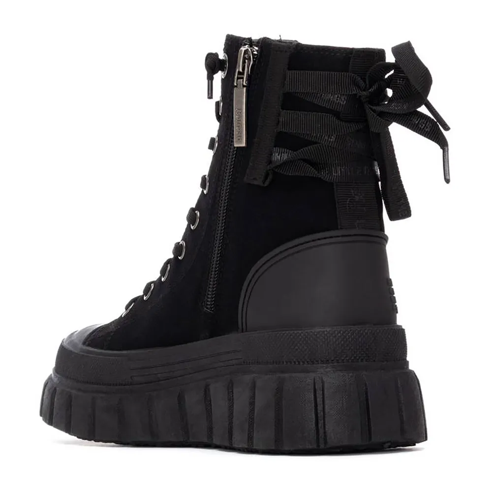 basket ultime de style bottine pour femme de la marque Refresh. Méticuleusement conçue pour un ajustement et une sensation supérieurs, elle est fabriquée en daim doux qui apporte une touche de luxe et de sophistication à vos tenues décontractées. Le génie des REFRESH 173077 réside dans leur système de fermeture intelligent. Elles se ferment avec une fermeture éclair intérieure, vous permettant de les enfiler et de les retirer avec une facilité absolue, éliminant ainsi la corvée quotidienne de lacer et délacer. Ceci est parfaitement complété par des lacets élastiques ton sur ton qui non seulement rehaussent l´esthétique épurée et monochrome, mais offrent également un ajustement flexible et sûr qui s´adapte au mouvement naturel de votre pied.
