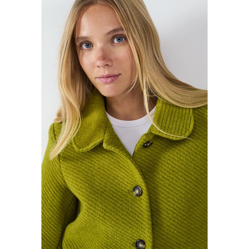 Giacca in lana testurizzata con collo a revers e chiusura frontale con bottoni.