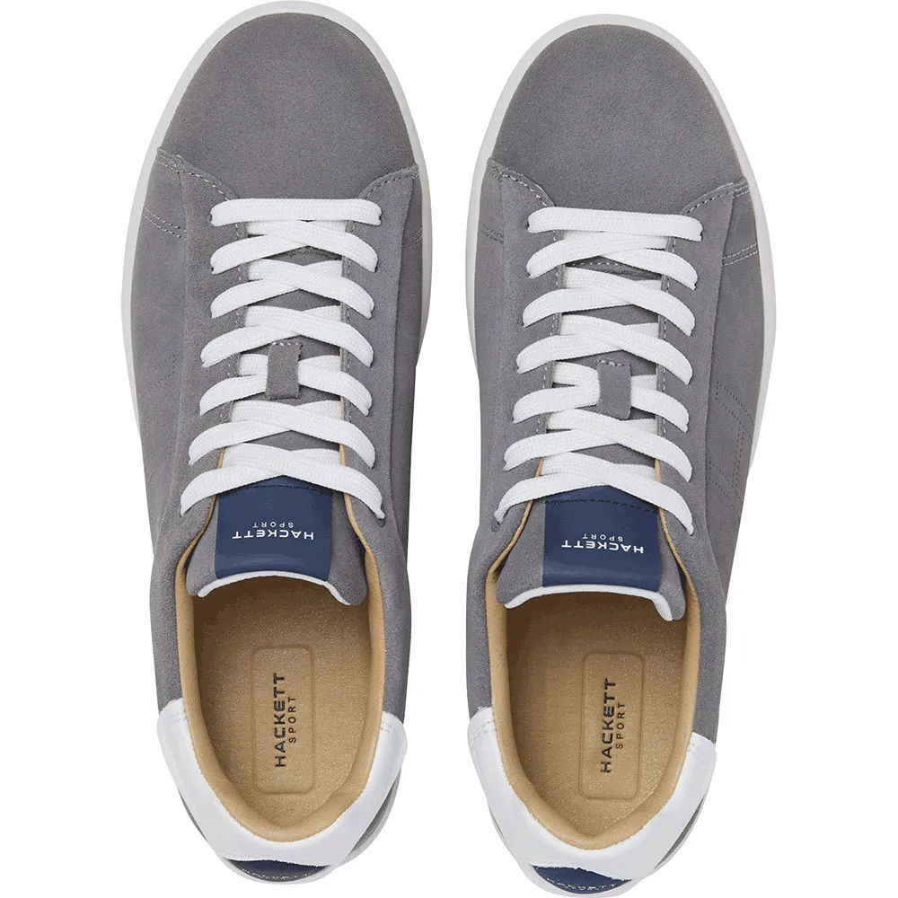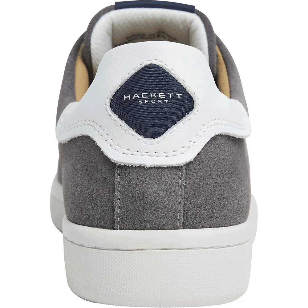 Sneaker sportiva Bond Soft dalle linee casual, realizzata in pelle scamosciata di mucca e dettagli in pelle pieno fiore come il passante sul tallone, logo "H" traforato sul quarto e, suola in gomma bicolore personalizzata con logo Hackett Sport, soletta interna rimovibile.