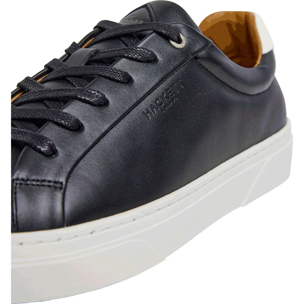 Classico design Hackney Lace di sneaker formale realizzata in pelle di vacchetta, fodera in pelle di bufalo conciata, soplante in pelle termoformata rimovibile e suola in TPU flessibile e confortevole, design esclusivo, occhiello personalizzato, logo Hackett sulla linguetta e sul tallone.
