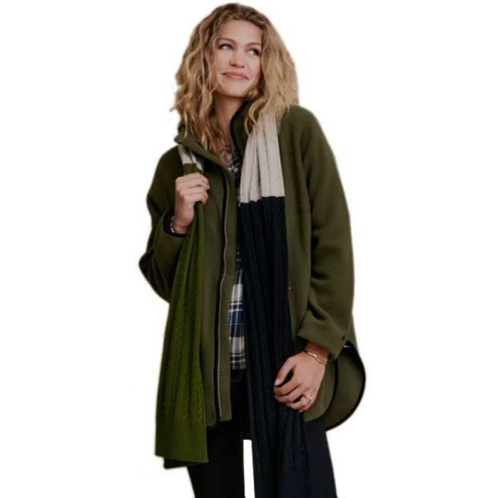 La sciarpa Vibe presenta una sofisticata palette tricolore, sapientemente intrecciata per creare un accessorio versatile che si abbina a un´ampia gamma di colori e stili. L´intricato motivo a trecce aggiunge uno strato di texture senza tempo e profondità visiva, evocando un senso di tradizione e artigianato classico. Questo elemento di design duraturo assicura che la sciarpa non sia solo una tendenza fugace, ma un capo базовый duraturo nella tua collezione, abbinandosi senza sforzo a un cappotto di lana sartoriale, una giacca di jeans casual o la tua maglieria preferita per il fine settimana.