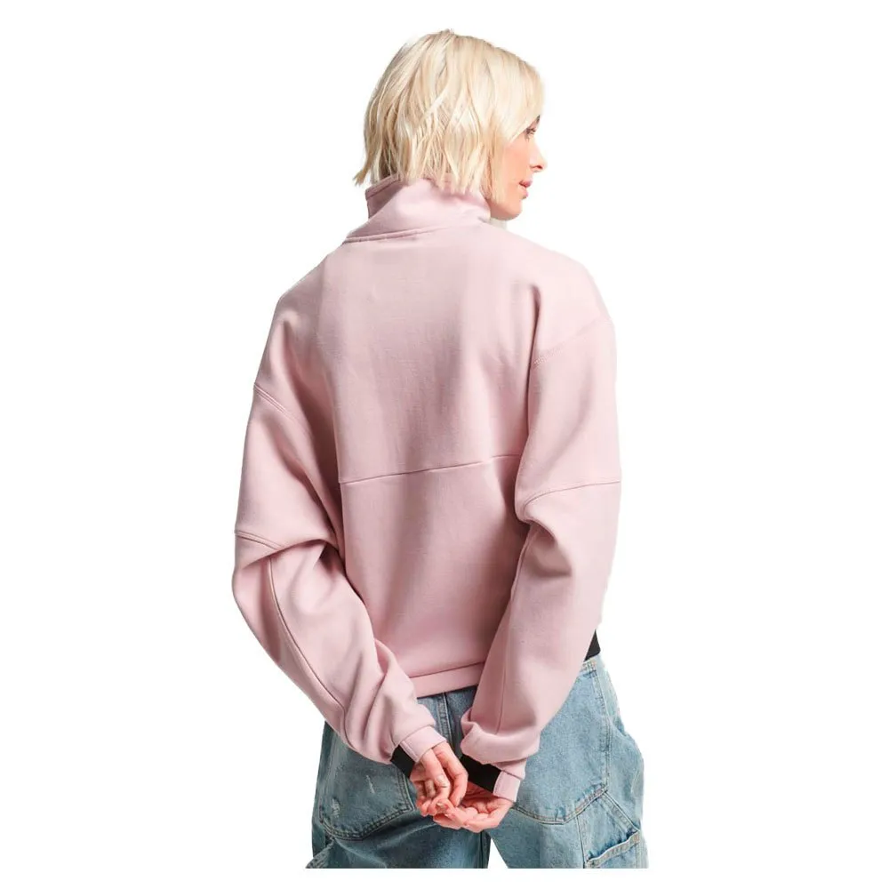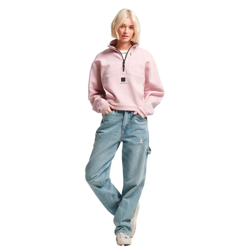 Vestibilità boxy - più larga e fluida, per le volte in cui hai bisogno di spazio per muoverti, Design corto, Tessuto in jersey interlock, Collo a imbuto, Chiusura a mezza zip, Maniche a pipistrello, Polsini elasticizzati, Tasca con zip sul petto, Tasca a marsupio frontale, Orlo elasticizzato sui lati, Logo Superdry.