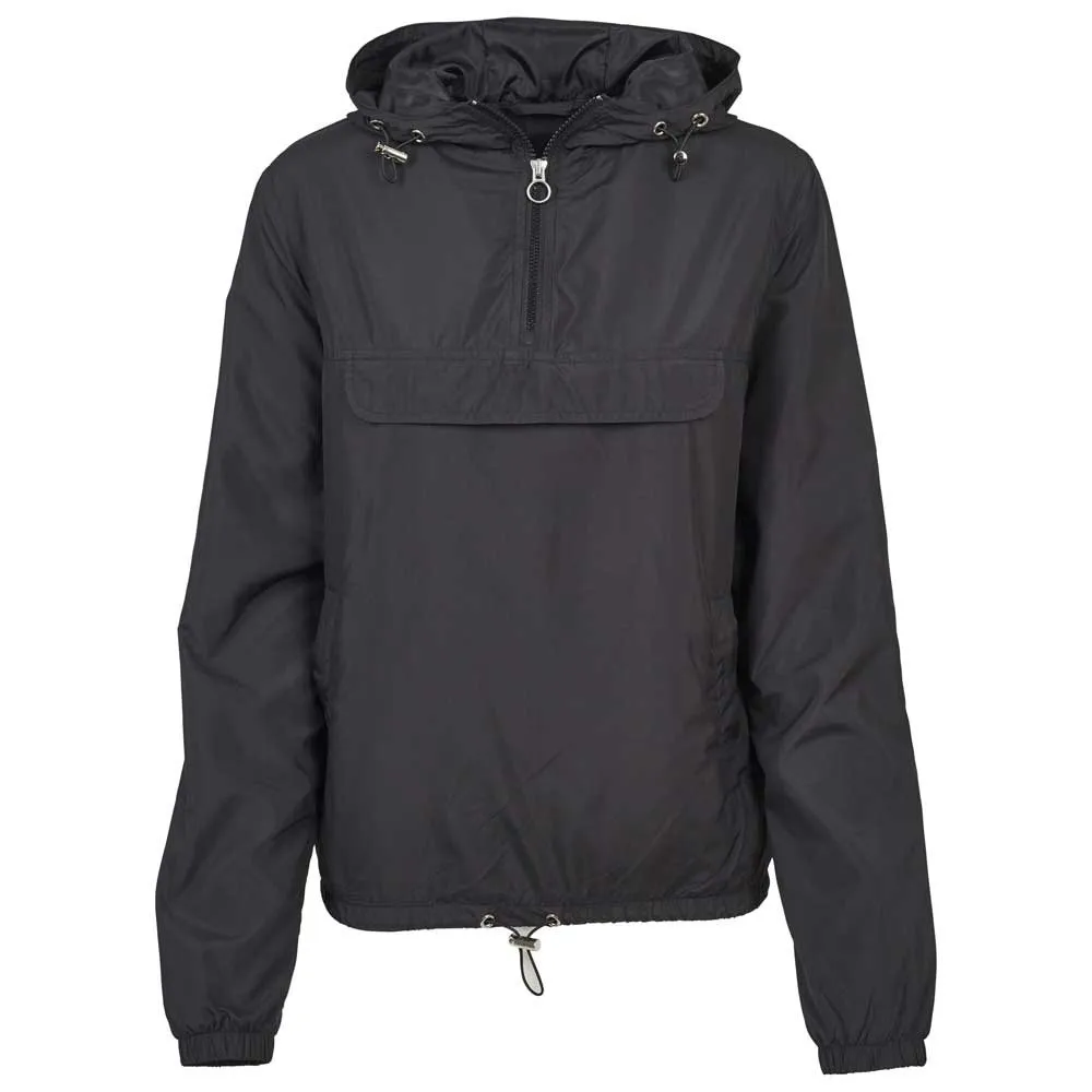 Il Pullover Ladies Basic è pratico, leggero e confortevole e ha tutti i dettagli tipici di una giacca a vento ´´un autentico basic dal cappuccio a collo alto con il suo elastico all'ampia tasca frontale decorativa e lacci elastici in vita.