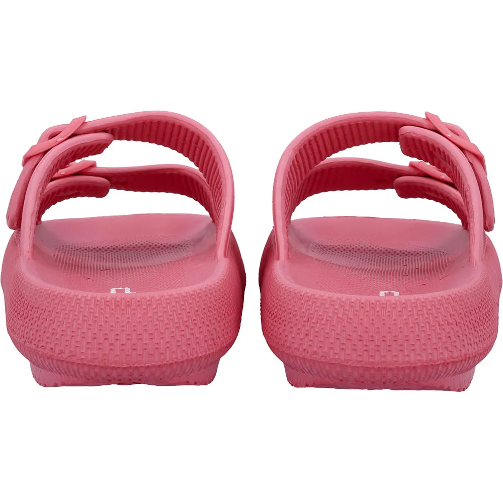 BELEM is het slip-on model met twee gespen en is gemaakt van EVA; een lichtgewicht, schokabsorberend materiaal. Verkrijgbaar in dubbele maten en volgt de trend van gestructureerde strand-/zwembadslippers met een plateauzool.