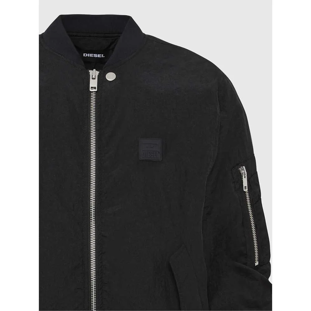 Deze bomber is gemaakt van gekreukt nylon, heeft een militair geïnspireerde ritszak en tape-details over de achterkant. Het is uitgerust met een doorgestikte ruitvoering voor warmte en heeft een rubberen D-logopatch op de borst.