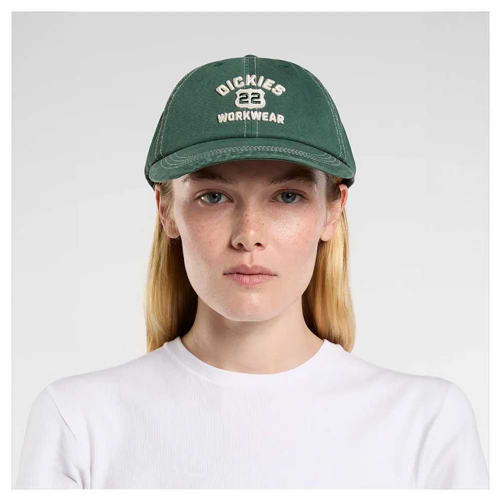Designet er forankret i Dickies´ arbeidstøyarv. Capsen er konstruert med en tradisjonell 6-panelstruktur, et design som er bevist for sin komfort og holdbarhet. For å forbedre pusteevnen under varmere dager eller anstrengende aktivitet, inkluderer den broderte ventilasjonshull som fremmer luftstrøm, og hjelper deg med å holde deg kjølig og komfortabel. Frontpanelet viser stolt den ikoniske, høyoppløselige broderte Dickies-logoen, et symbol på kvalitet og håndverk anerkjent over hele verden. Denne nøkkelfunksjonen lar deg bære et stykke arbeidstøyhistorie, og gir et snev av autentisitet til utseendet ditt.