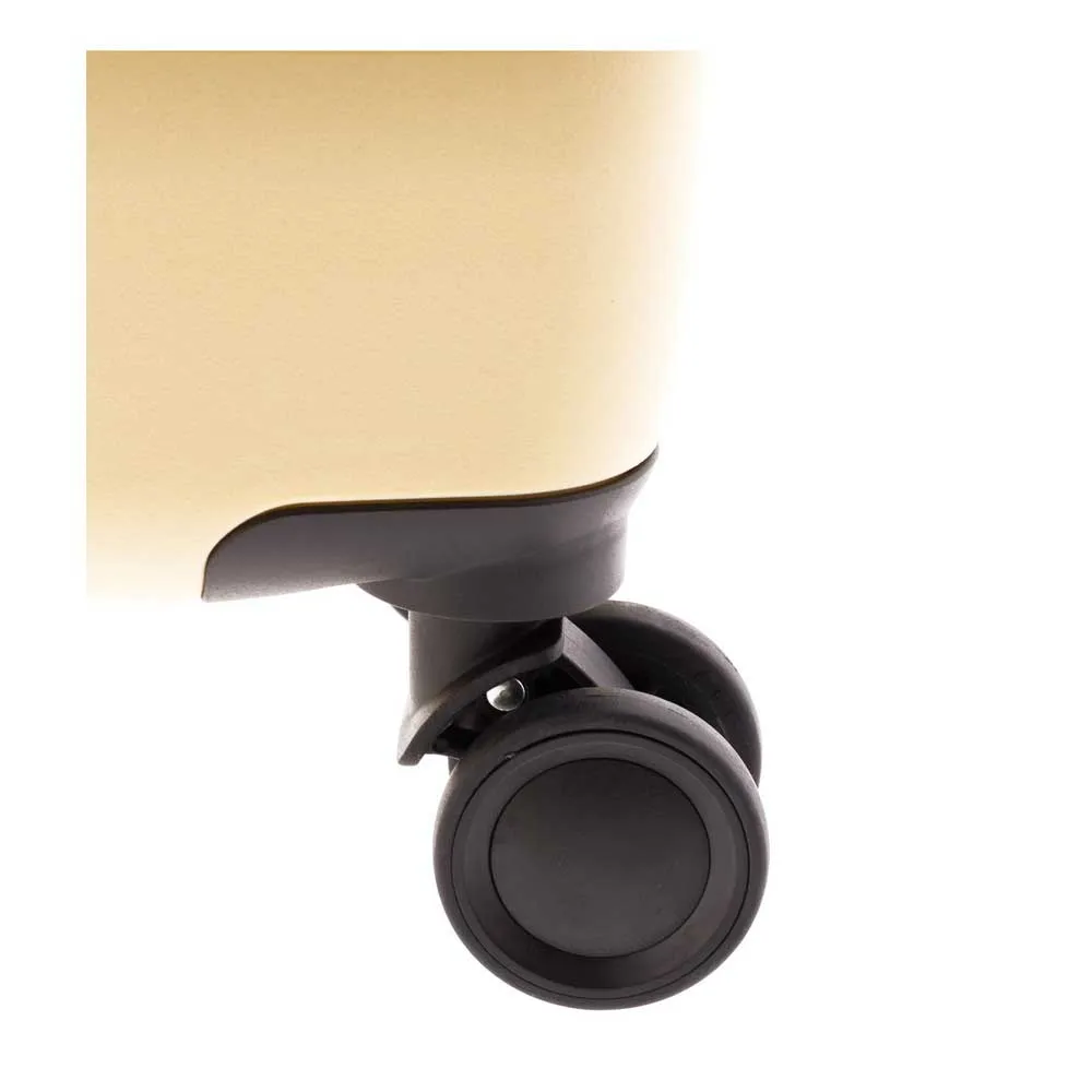 Middels koffert i supersterkt polypropylenmateriale.