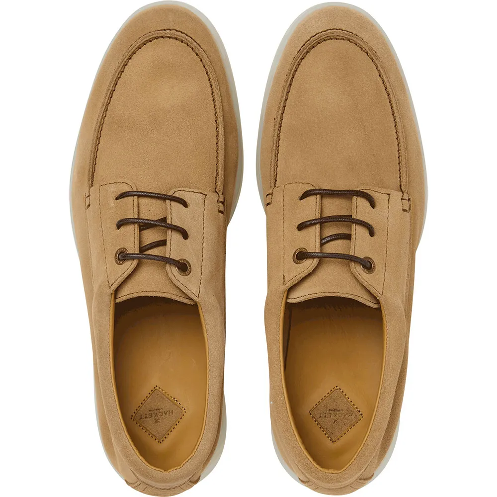 Martin båt minimalistisk snøresko laget av silkemykt semsket skinn med sømmer på vristen, uforede konstruksjon og gjennomsiktig gummisåle, myk, komfortabel og fleksibel design.