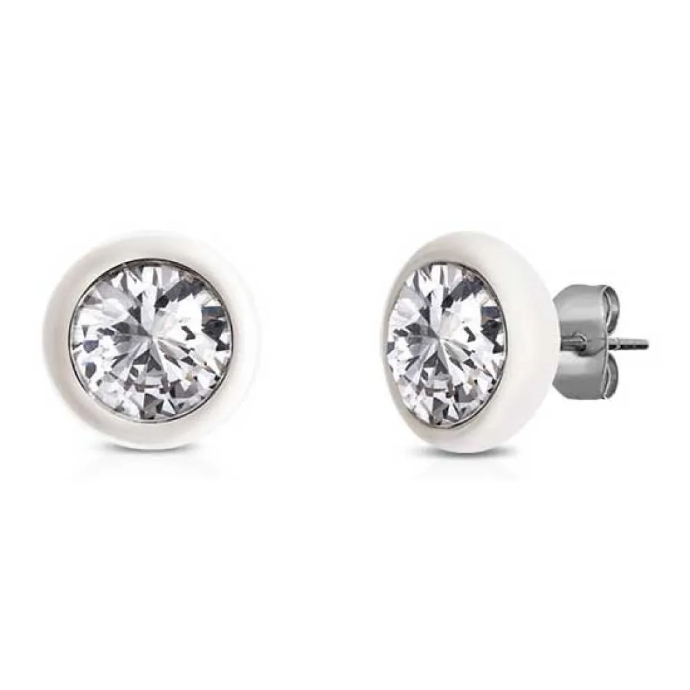 Oppdag de utsøkte detaljene i dette must-have tilbehøret: Øredobber i polert stål og krystaller med emaljerte rammer, rund stein, personlig OPS. Størrelse 1 cm. Det minimalistiske ørestikkdesignet fokuserer all oppmerksomhet på det strålende samspillet mellom den glitrende krystallen og den fargerike emaljen, og skaper et utseende som er både klassisk og forfriskende moderne. De er et viktig tillegg til enhver velkurert smykkesamling. Tekniske spesifikasjoner: