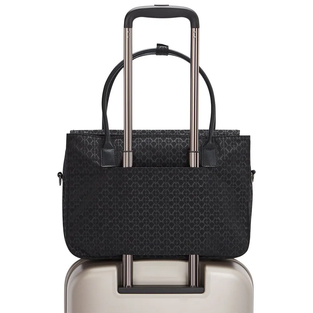 Ta stylowa torba jest wyposażona w ochronną przegrodę na laptopa, odpinany pasek na ramię, poręczny pokrowiec na walizkę na kółkach i oczywiście zabawny brelok z małpką.