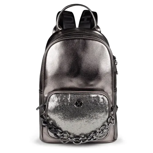 Plecak został wykonany z dbałością, z wysokiej jakości materiałów, które zapewniają trwałość i długowieczność. Srebrny kolor dodaje elegancji i wyrafinowania do ogólnego projektu, co czyni go świetnym dodatkiem zarówno na okazje codzienne, jak i formalne.