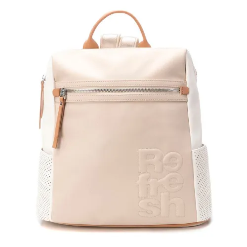 Kobiecy plecak marki Refresh. Wykonany z materiału imitującego skórę z wytłoczonym logo. Wygodny i praktyczny, aby nosić ze sobą swoje rzeczy. Z kieszeniami dla większego komfortu. Wymiary 33x24x15cm. Ten model został certyfikowany jako wegański przez światową organizację PETA (Organizacja Praw Zwierząt).