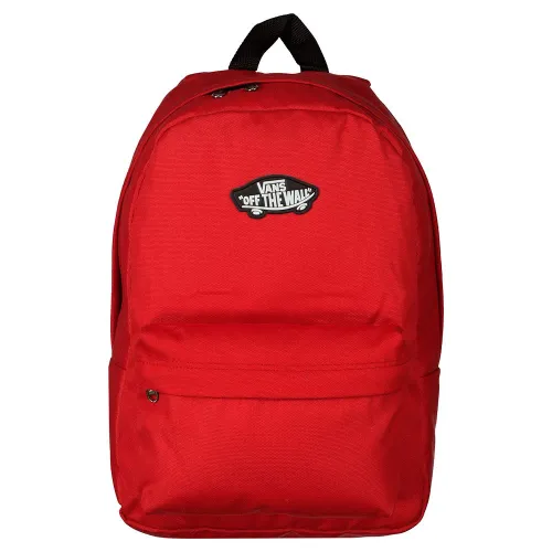 Nowy plecak skool to poliestrowy plecak z dużą komorą główną, nadrukiem logo vans i przednią kieszenią na suwak z wewnętrznym organizerem.