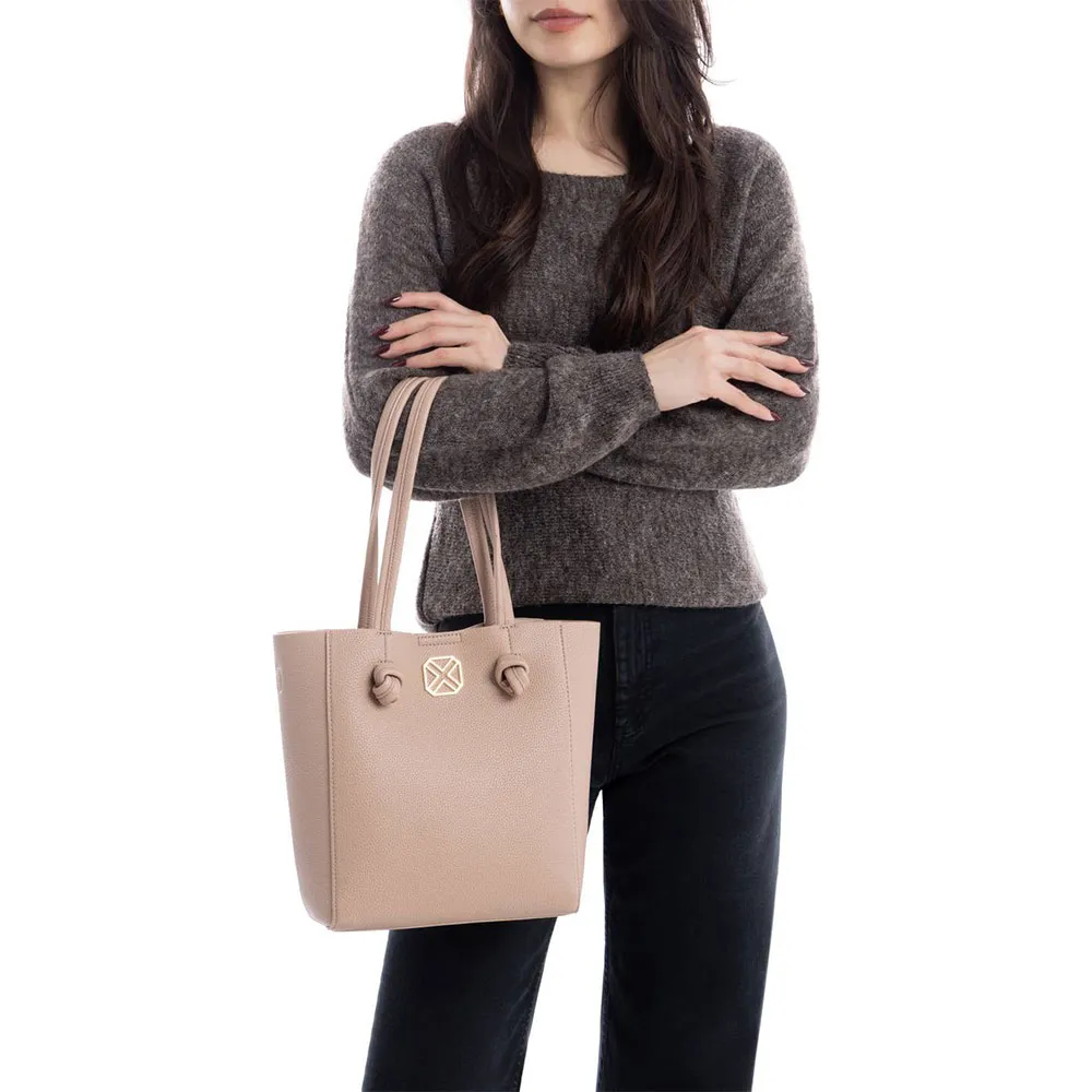 Torba shopper Xti wykonana ze skóry ekologicznej z zapięciem na klips dla większej wygody. Zawiera wyjmowaną wewnętrzną torebkę zapinaną na zamek, idealną do organizowania rzeczy. Opcjonalny pasek na ramię sprawia, że jest praktyczna i wygodna w noszeniu. Stylowy i funkcjonalny dodatek na co dzień. Wymiary: 25x28 x 9 cm. Ten model posiada certyfikat wegański przyznany przez globalną organizację praw zwierząt PETA (Peta).