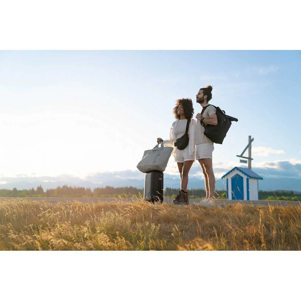 - Tecido principal feito de Plástico Reciclado retirado do Oceano, forro de PET reciclado, fivelas de POM, fitas de PET reciclado, zíper de nylon reciclado