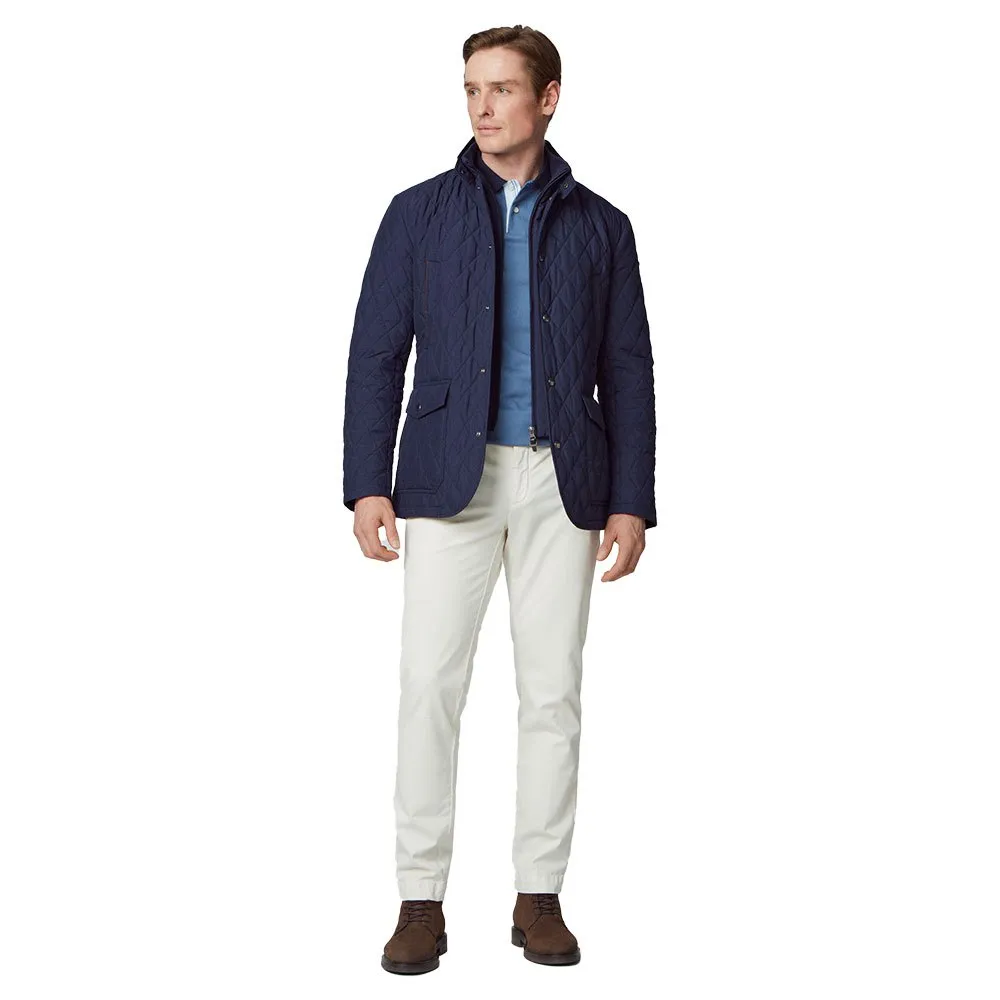 Este icónico casaco masculino é mais do que apenas uma peça de roupa; é um investimento em estilo duradouro. A subtil mas distinta marca Hackett no peito serve como um selo de qualidade e bom gosto. Quer esteja a ir para a cidade durante o dia, a encontrar-se com amigos para almoçar, ou à procura de um companheiro de viagem sofisticado, o casaco Paddock cumpre em todas as frentes.