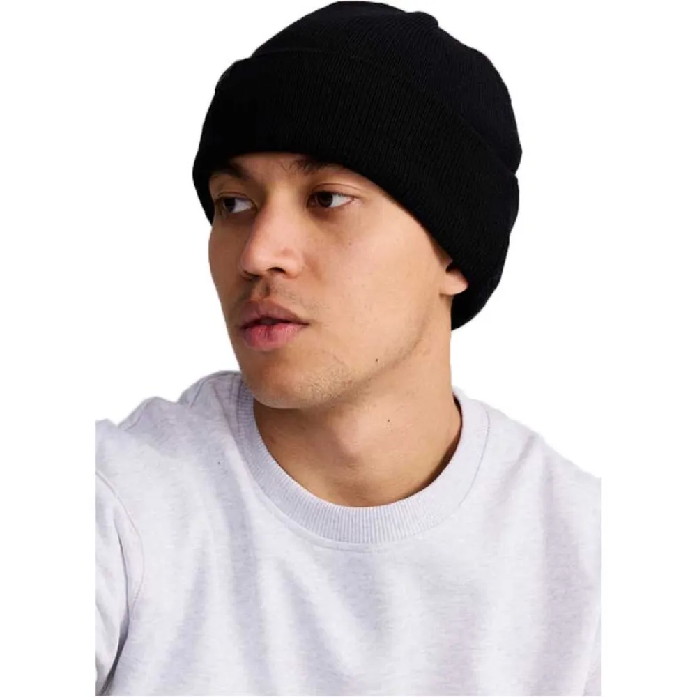 Uma touca de lã Merino com uma etiqueta Makia na dobra.