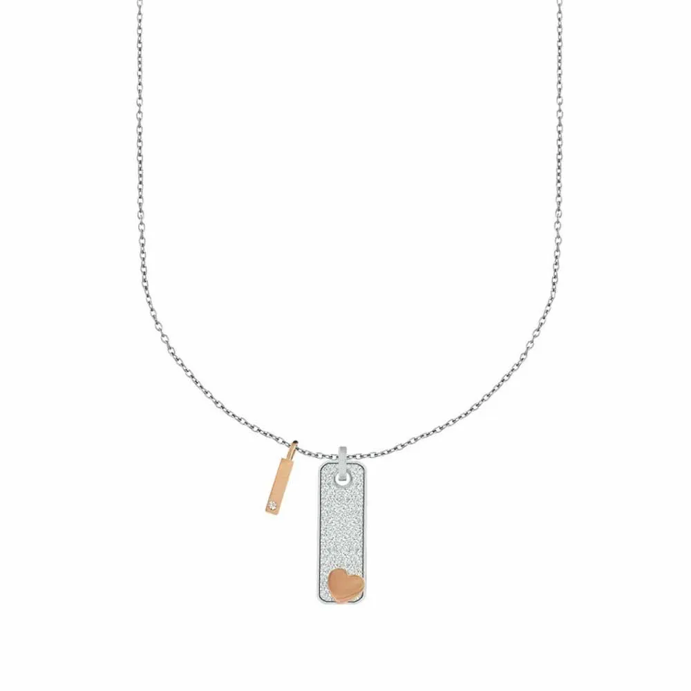 OBJETOS OPS Acessórios Joalheria Meu colar Glitter Colar de corrente de aço polido personalizado com coração OPS. Pingente de letra com tratamento PVD ouro rosa e medalha de glitter. Comprimento 45 cm ajustável para 50 cm.