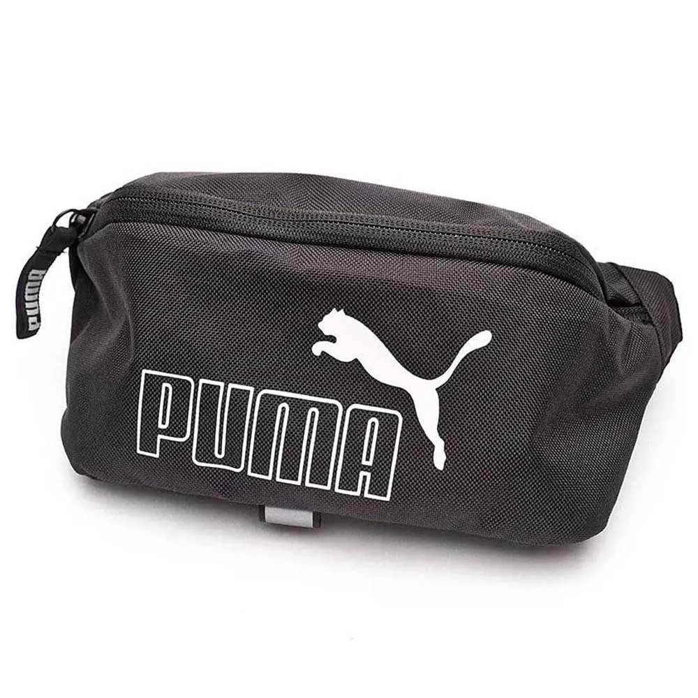 Abertura com zíper no compartimento principal, bolso com zíper escondido atrás, forro de poliéster 150D com forro de PU, alça de cintura ajustável com fecho rápido, costas acolchoadas, puxadores de zíper de metal da marca PUMA, fita reflexiva na frente, grande logotipo PUMA impresso na frente.