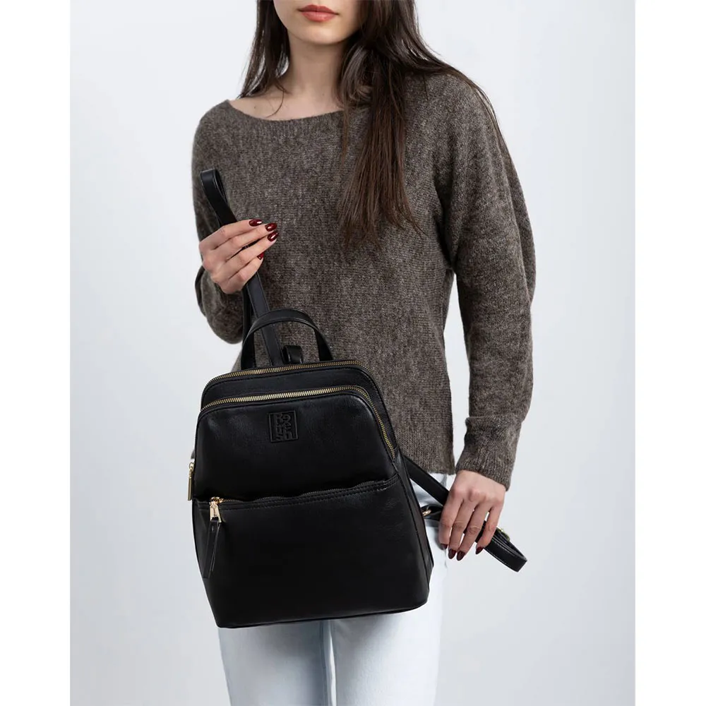 Feita de um material sintético premium e durável, esta mochila oferece um visual sofisticado com o benefício de ser leve e fácil de manter. Sua silhueta elegante foi projetada para complementar qualquer roupa, desde roupas casuais para o dia a dia até conjuntos mais elegantes e profissionais. A construção cuidadosa garante que seus pertences não sejam apenas transportados com estilo, mas também mantidos seguros e bem organizados ao longo do seu dia agitado.