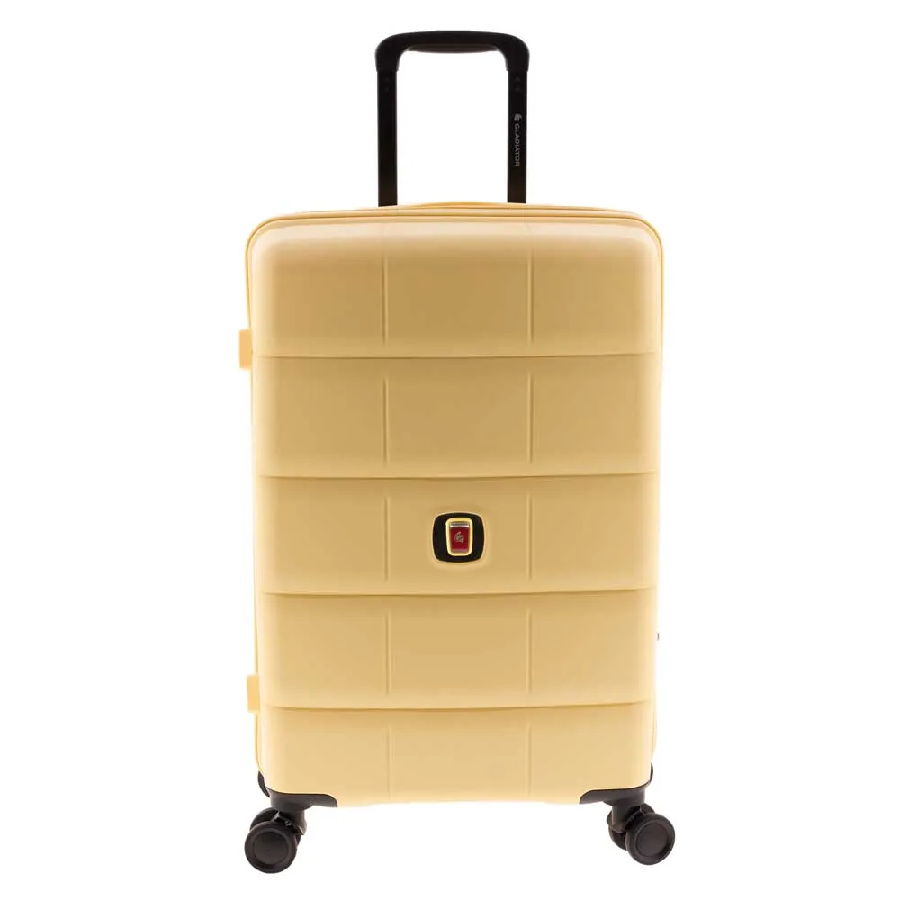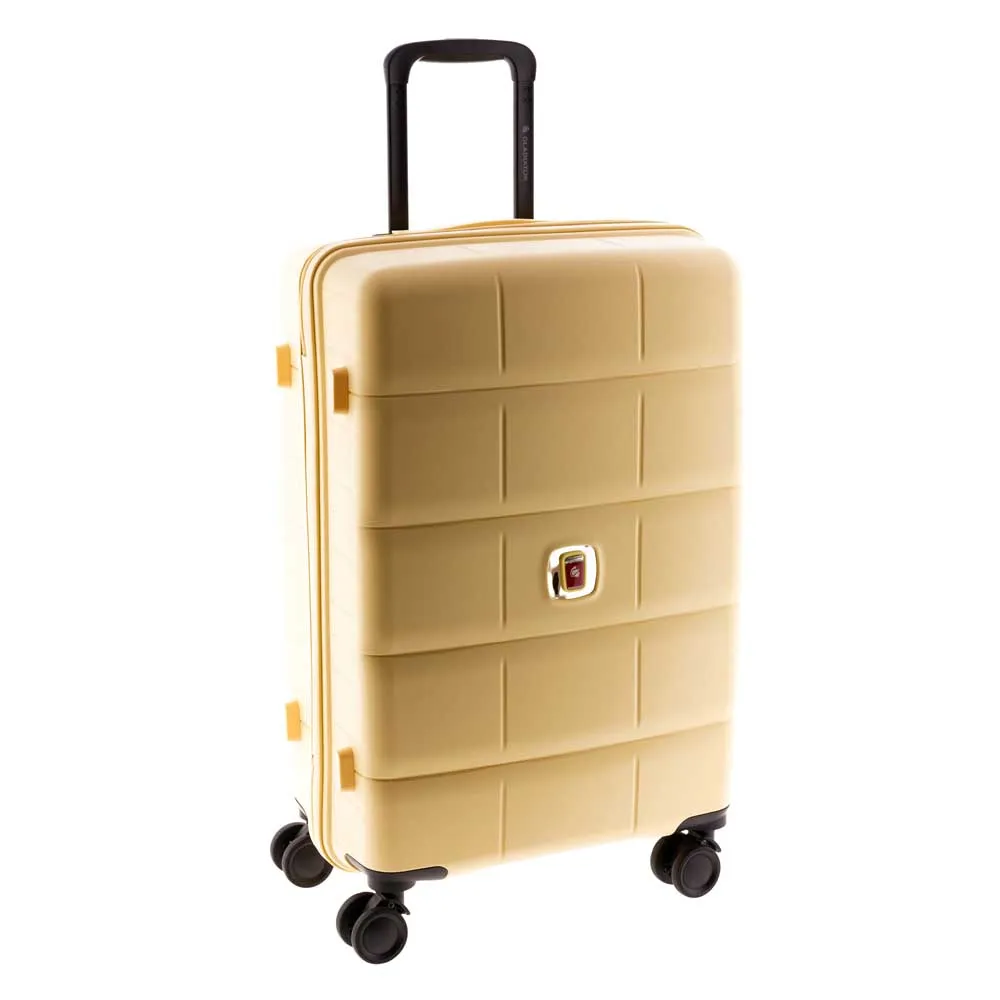 Mellanstor resväska i superresistent polypropylenmaterial.